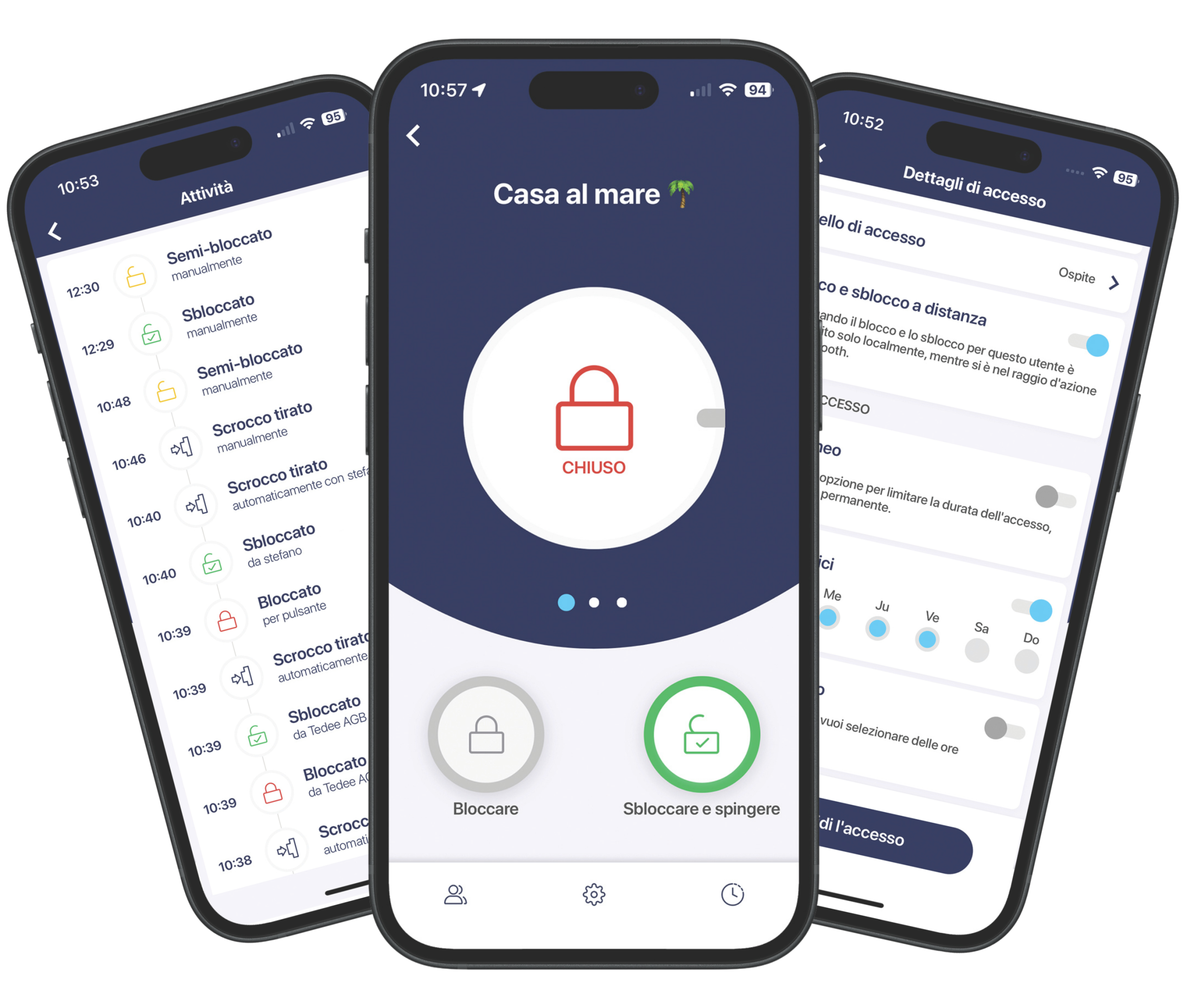 - Sblocca la serratura con chiavi elettroniche, codici PIN o link d’accesso.